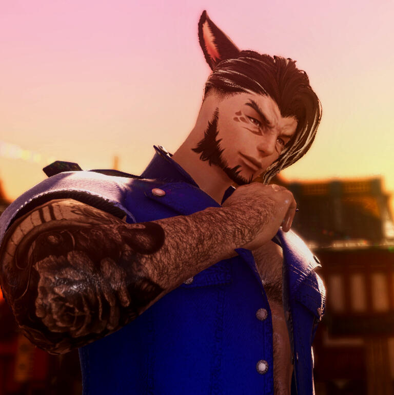 Born beneath the flickering lanterns of Kugane’s underbelly, Axel Pucarus clawed his way through childhood on nothing but charm, cunning, and the instinct to survive. With no family name and no future promised, he learned early that luck favors the bold—and that boldness, when dressed in silk and sealed with a smirk, could open even the most gilded doors.At sixteen, fate dealt him a new hand: he was taken in by the Twin Velvet Lobo, an exclusive performing guild run by a pair of infamous Au Ra twins—Vicente and Manuel. The guild was a hidden gem of Eorzea’s nightlife, known for its spellbinding performances, discreet companionship, and underground gambling dens that whispered of riches and ruin.Vicente, the sharper of the two, ruled the gambling circuit with cold calculation and high expectations. He took Axel under his wing, sculpting him into a performer who could captivate a crowd and a gambler who could clean a table. Under Vicente’s guidance, Axel honed a silver tongue, a poker face, and a near addiction to the thrill of the gamble. Though Vicente wore a stern façade, his rare moments of warmth made him the closest thing Axel had to a mentor… or a father.When Axel turned eighteen, his path gently shifted toward Manuel—a warm, alluring soul who led the guild’s escort division with grace and tact. Manuel refined Axel’s social skills, teaching him the art of companionship, from bathhouse etiquette to managing high-end clients. Through Manuel, Axel learned patience, poise, and the true power of intimacy—not just carnal, but emotional. Relationship-building, Manuel often said, was more profitable than any game of chance.For years, Axel flourished in the Velvet Lobo—both as a rising star and as a bridge between two philosophies. He became a sought-after escort with a growing list of loyal patrons, and a charismatic gambler who turned losses into opportunity. He loved the life, the people, the stage… until it all shattered.The twins fell out in a fiery schism, fracturing the guild down its middle. Each expected Axel to choose a side.He couldn’t.Torn between the two men who made him who he was, Axel refused to betray either. The Velvet Lobo dissolved, and with it went the closest thing he’d ever had to a family. Heartbroken and untethered, Axel left with only his skills, his memories, and a single photo of the three of them—frozen in better days.Now, Axel lives in Ul’dah, carving out his own legacy. He manages and uplifts venues that center erotic performance, guiding new talent with the same care he was once shown. Every client he pleases and every coin he wins is a silent tribute to Vicente and Manuel. He remains a flirt, a strategist, and a loyal heart—draped in velvet, but forged in fire.In his private quarters, nestled among incense and moonlight, sits a single frame: a reminder of where he came from, and the love that raised him.